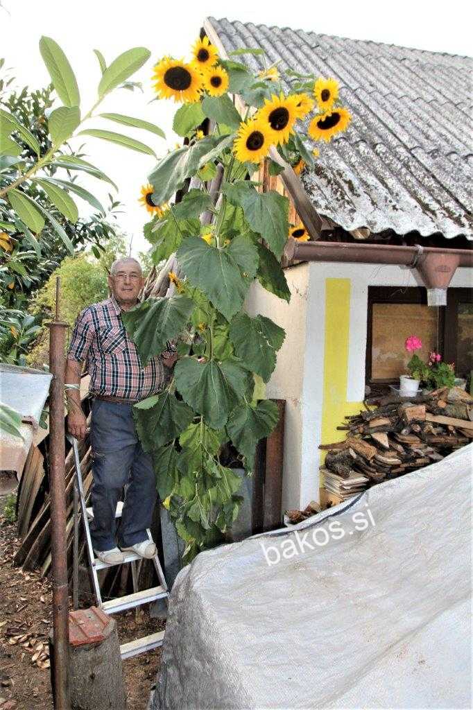 Ob hiši Franca Kocmuta v Cerkvenjaku je zrasla 3,5 metra visoka sončnica