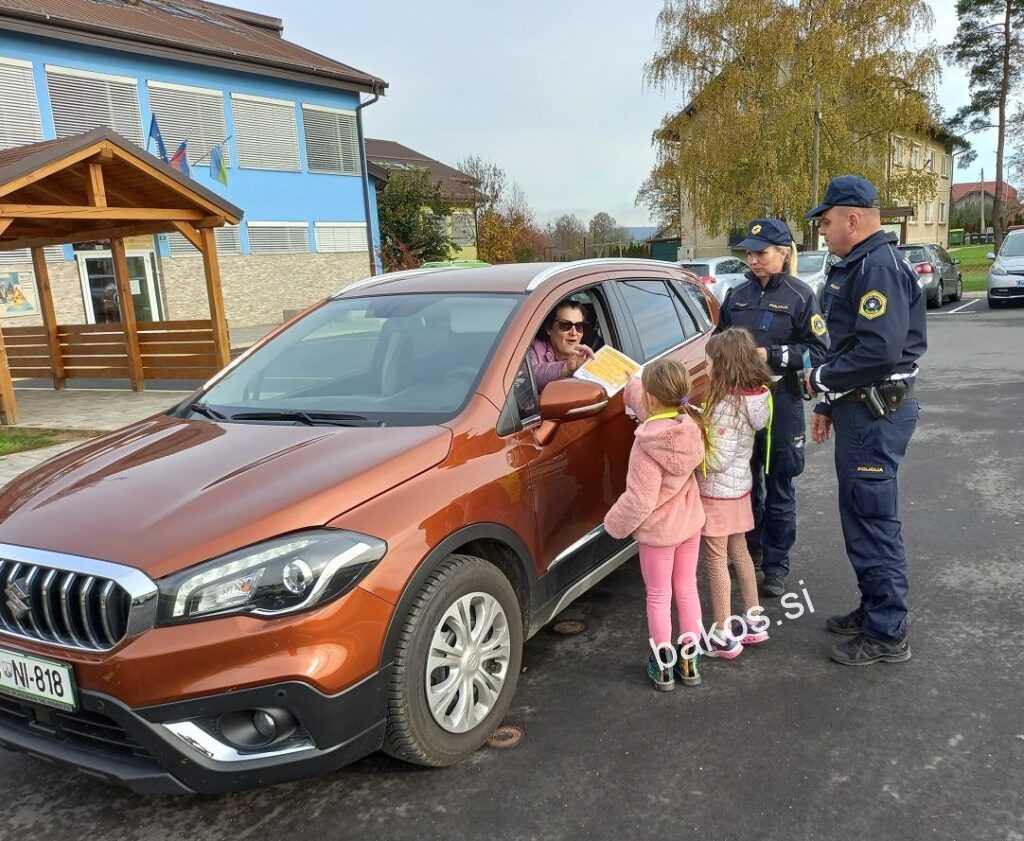 Voznikom so delili likovne izdelke in jim zaželeli srečno in varno vožnjo