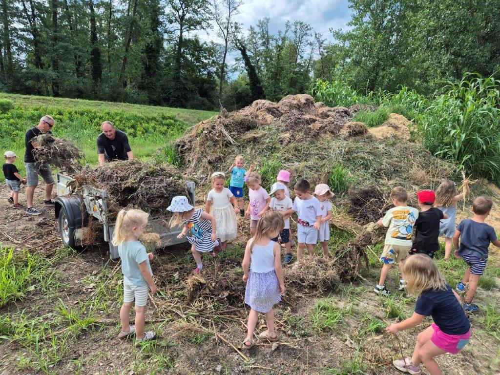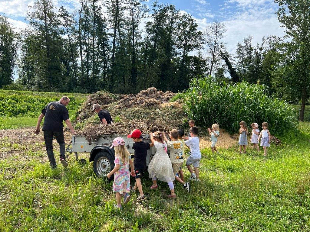 Kar zanimive in za otroke izjemno vesele in razigrane delovne počitnice na Pomurskem sejmu je imelo kakšnih 35 otrok iz radgonskega vrtca Manka Golarja. Na delovnih počitnicah, ki bodo malčkom ostale v dolgem spominu, in ki jih je vodil predsednik Društva za permakulturo Slovenije Tomislav Gjerkeš, se najmlajši pripadniki skupnosti niso samo družili in igrali, temveč so dobesedno in koristno delali. „Skupaj smo na sejmišču, pri slamnati hiški, pripravili čudovit prostor za predstavitev permakulture na sejmu AGRA 2025, med 23. in 28. avgustom. S skupnimi močmi smo urejali kompostnik, potem so otroci oporavili poletno rez malin, uredili ustrezni podest ipd.,“ nam je zaupal predsednik Društva za permakulturo Slovenije Tomislav Gjerkeš, ki je že leta 2018 v sklopu mednarodne skupine, katera je razvila permakulturno pedagogiko postal trener programa Otroci v permakulturi.