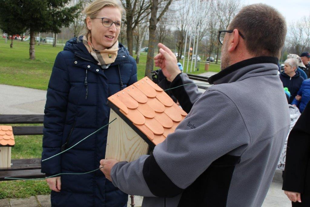 Učenci omenjene šole so namreč v minulih mesecih, skupaj z EKO predstavniki matične šole, pod mentorstvom učitelja Vita Dundeka, in koordinatoric EKO šole Jasmine Kolbl in Tamare Sakovič, izdelali kar nekaj ptičjih gnezdilnic, katere so na debelejša in močnejša drevesa v parku, svečano postavili tik ob začetku koledarske pomladi 2024. Poleg otrok iz šole in vrtca ter njihovih učiteljev in vzgojiteljev, starostnikov iz doma ter drugih občanov, so se svečane postavitve gnezdilnica na drevesa, udeležili tudi: dr. Suzana Bračič Arcet, direktorice doma starejših občanov; Sabina Steyer Debeljak, ravnateljica vrtca Manka Golarja; radgonska županja in podžupan, Urška Mauko Tuš in Miran Dokl, ornitolog iz Društva za opazovanj in proučevanje ptic Slovenije, Robert Žiško. Seveda so na samem dogodku prisostvovali tudi učenke in učenci – predstavniki EKO šole s koordinatorkama, predstavniki 19. šolske otroške vlade z mentorico, učenci PŠ dr. Janka Šlebingerja (NIS 3). Zaradi varnosti so pri postavitvi gnezdilnic nesebično pomagali vedno požrtvovalni in pogumni gasilci iz domačega PGD Gornja Radgona: Denis, Goran, Marko K., Marko Š., Miha, Nejc in Robin. Eno gnezdilnico so predali tudi županji Urški Mauko Tuš, ki je med zahvalo dejala, da jo bo občinski hišnik namestil na eno izmed dreves v neposredni bližini občinske stavbe. Poleg županje so sicer dar gnezdilnico prejeli tudi: ravnateljica Vrtca Manka Golarja Gornja Radgona, Sabina Steyer Debeljak, Dom starejših občanov GR, PGD Gornja Radgona in Gozdarstvo Gornja Radgona.