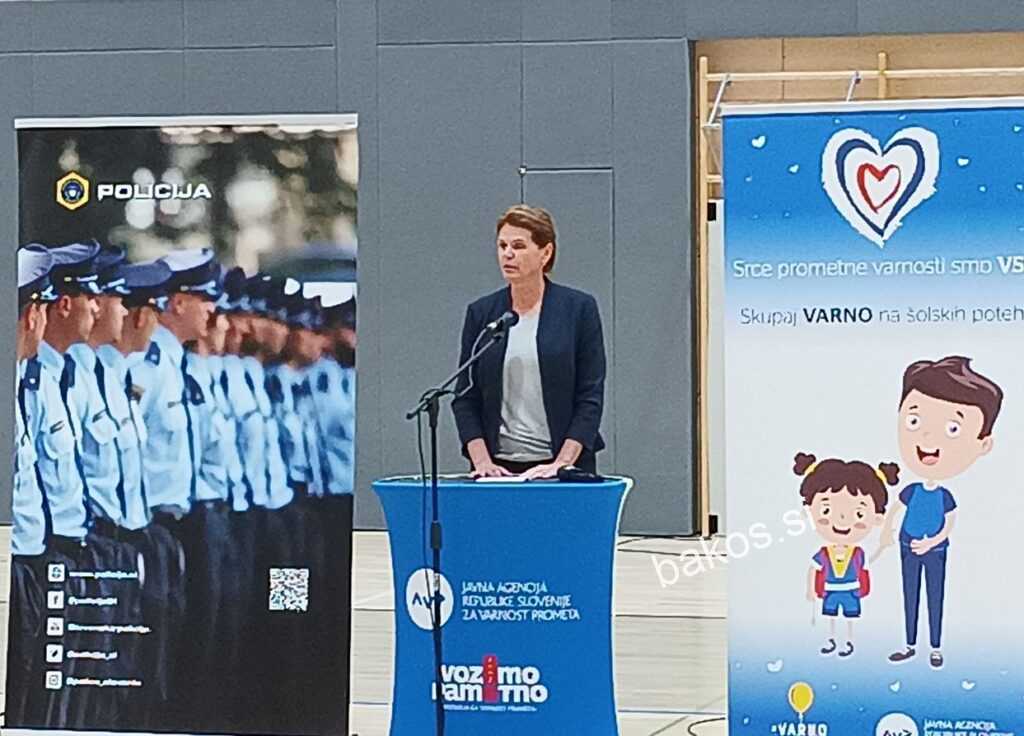 Prvi šolski dan, ko šolske pragove po vsej državi prvič prestopa 20. so predstavniki Ministrstva za infrastrukturo, Agencije za varnost prometa, Policije in Zavoda RS za šolstvo danes obeležili na Osnovni šoli Blaža Arniča Luče ter Podružnični OŠ Solčava. Pot v šolo je letos na področjih, ki so jih močno prizadele poplave in so še v fazi aktivne sanacije, povsem drugačna, saj poteka tudi mimo plazišč in skozi delovišča. Zagotavljanje prometne varnosti otrok je na teh območjih zato še toliko bolj ključno. Ministrica za infrastrukturo mag. Alenka Bratušek je ob tem izpostavila: »Vesela sem, da smo s skupnimi močni uspeli zagotoviti, da se novo šolsko leto tudi na teh območjih začenja 1. septembra, kot vsako leto. Prometna varnost otrok je na prvem mestu. Zato je pomemben korak tudi vzpostavitev interventne prevoznosti za šolske prevoze. Še dva dni nazaj ni bilo jasno, ali bo to mogoče. Zato se zahvaljujem za izjemen trud in napore vsem, ki ste omogočili takšno prevoznost ceste in z njo začetek obsežne sanacije prometne infrastrukture na teh območjih, kar pa bo terjalo še kar nekaj časa.« Učencem, učiteljem in staršem je zaželela uspešno šolsko leto, voznike pa pozvala k odgovorni in varni vožnji vse leto, ne le na prvi šolski dan.