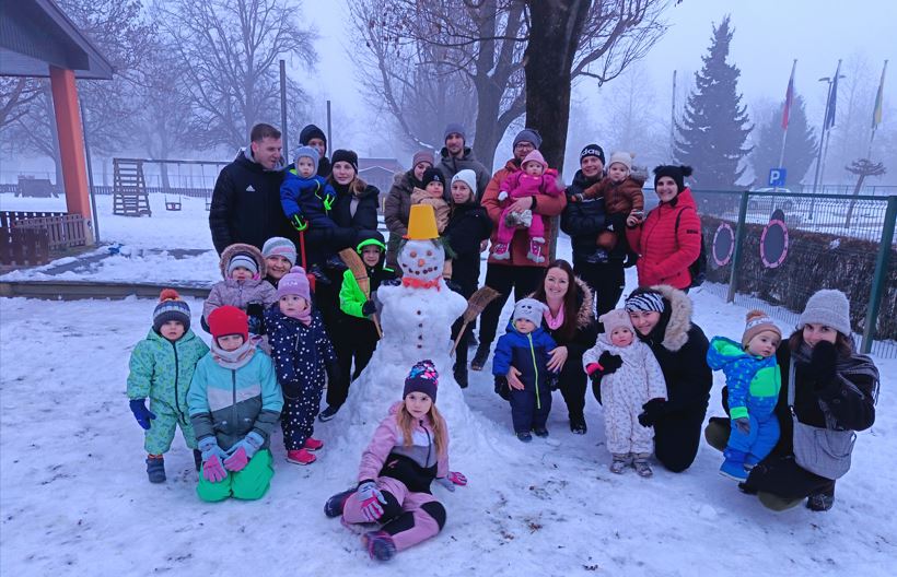V zimskem času, ko narava obleče belo obleko, smo v vrtcu pripravili prav posebno družinsko srečanje za otroke 1. starostnega obdobja in njihove starše. Srečanje je potekalo na snegu, v sproščenem in prijetnem vzdušju, polnem smeha, igre in toplih trenutkov. Otroci so skupaj s starši raziskovali zasneženo okolje, se igrali s snegom, delali snežene kepe ter opazovali sledi v snegu. Za mnoge najmlajše je bil to prvi stik s snegom, zato so ga doživljali z velikim navdušenjem in radovednostjo. Ob podpori staršev in vzgojiteljic so otroci pogumno stopali, tipali hladen sneg ter uživali v novih občutkih. Poseben trenutek srečanja je bilo skupno ustvarjanje snežaka. Z združenimi močmi otrok, staršev in vzgojiteljic smo oblikovali velike in male snežne krogle, snežaku dodali oči, nos in nasmeh ter ga ponosno občudovali. Otroci so z veseljem sodelovali in spremljali, kako iz kupa snega nastaja prava zimska podoba snežaka.