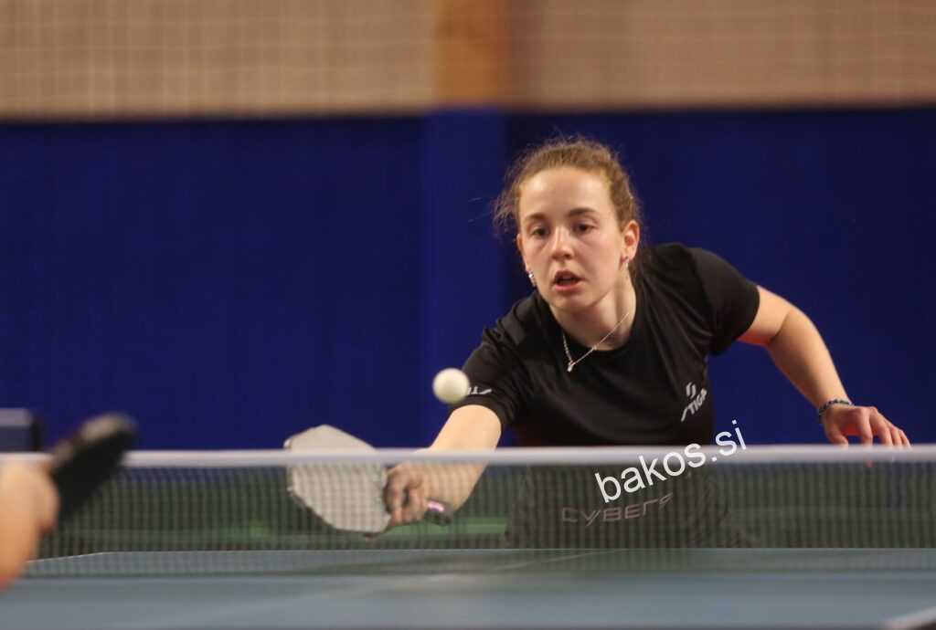 Sara Tokić in Ana Tofant, ki sta se v posamični konkurenci pomerili v polfinalu, slavila je Tofantova, sta v ženskih dvojicah po lanskem drugem mestu le prišli do naslova državnih prvakinj. Lani sta ju v finalu zaustavili Katarina Stražar in Lea Paulin, letos pa sta ju Tofantova in Tokićeva s 3:1 (4, -5, 9, 8) premagali že v polfinalu. Drugi finalistki sta bili Enya Moltara in Lara Opeka (Kajuh Slovan), ki v polfinalu Nuši Kadiš in Poloni Horvat (obe Fužinar Inter Diskont) nista oddali niti niza, toda v finalu sta bili proti Tokićevi in Tofantovi nemočni, saj sta izgubili z 0:3 (-2, -6, -2).