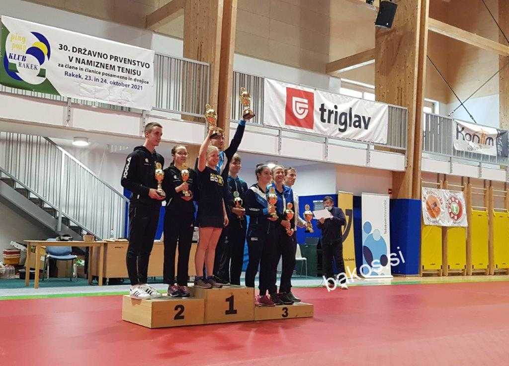 Prav tako sta tretjič zaporedoma na Rakeku v ženskih dvojicah slavili Katarina Stražar in Aleksandra Vovk, ki sta bili v finalu boljši od Lee Paulin in Jane Ludvik (Arrigoni) s 3:1(-10, 7, 9, 10). Izolčanki sta v polfinalu s 3:0 premagali Laro Opeka in Tjašo Novak (Kajuh Slovan), Vovkova in Stražarjeva pa sta prav tako brez izgubljenega niza ugnali Špelo Trelec in Tjašo Supanič (obe Vesna).