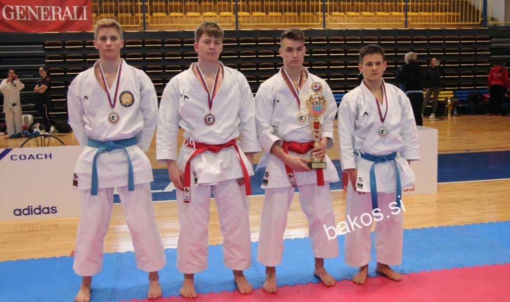 Slika: Med člani, v katah je državni prvak Nejc Sterniša (KK Seki) pred Blažom Klobasa, ter Mišelom Čučkom (oba KK Radgona) in Timijem Močnikom (KK Petrovče)
