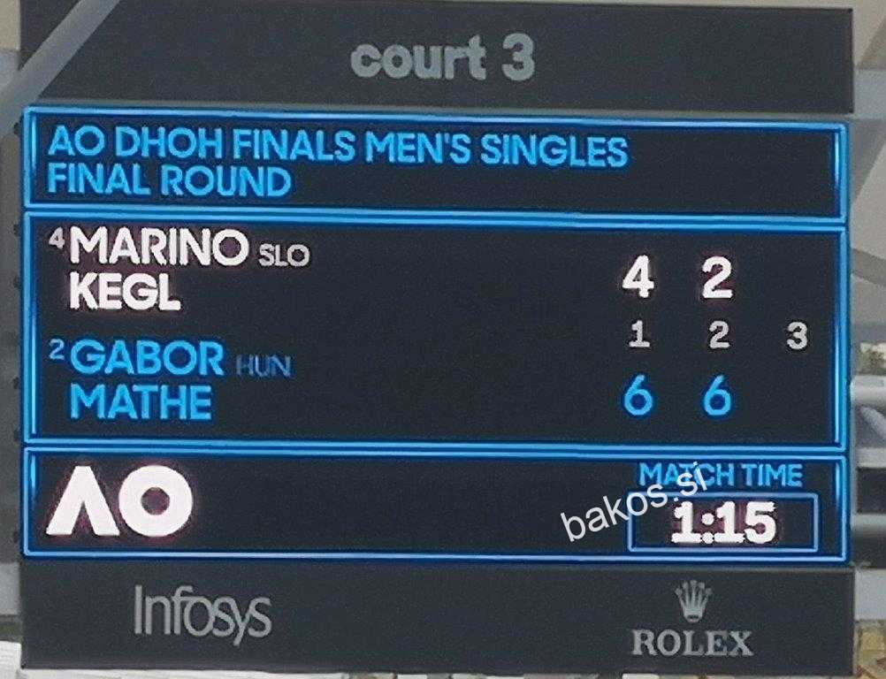 „V polfinalu sem premagal št. 1 na svetu, Jaroslava Šmedeka (CZE) 3:6, 6:4 in 7:5, v finalu pa sem izgubil proti prijatelju Mathe Gabori (HUN), 4:6, 2:6. Ker je vmes precej rosilo nisem upal pritisniti do konca. Na koncu sem drugi. Hvala za podporo, sLOVEnija…“ je iz Melbourna sporočil Marino, ki je tako po štirih zmagah v skupinskem delu, v finalu klonil proti izkušenem Madžar Gabor Mathe, a svoj dosežek ocenjuje z izjemen.