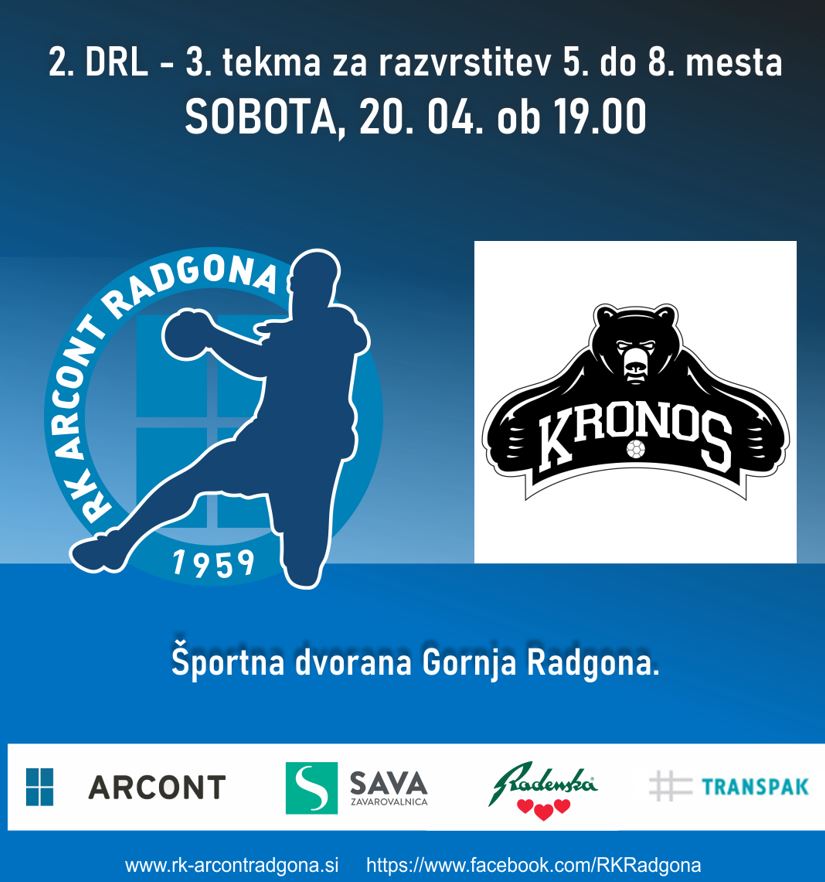 Rokometaši RK Arcont Radgona, bodo to soboto, 20. aprila ob 19. uri, po daljšem času spet odigrali uradno prvenstveno tekmo v domači dvorani. V športno dvorano v Gornji Radgoni prihajajo rokometaši RK Kronos Logatec, s katerimi Radgončani pogosto zmagujejo. In zakaj ne bi slavili tudi tokrat?