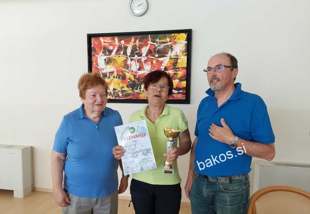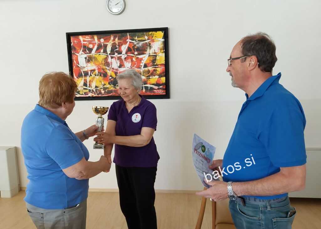 Najboljše so se odrezale upokojenke DU Černelavci, druge so bile tekmovalke DU Bakovci in tretje DU Beltinci. Po tekmovanje, ki je potekalo dejansko v prijetnem vzdušju tik ob reki Muri, je ob samem balinišču, v Domu starejših občanov Gornja Radgona, potekalo tudi druženje in razglasitev rezultatov. Priznanja najboljšim sta podelila predsednica in športni referent DU Gornja Radgona Inge Ivanek in Branko Kos, ki je bil tudi vodja tekmovanja, sodnik pa je bil Franc Kustec.