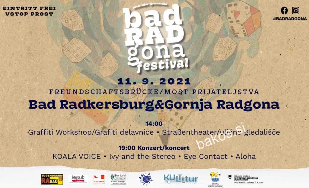 Pod geslom »brezmejni – brezmejno« bo to soboto, 11. septembra 2021, potekal prvi »BAD RADgona festival« – umetnostno – glasbeni festival, namenjen povezovanju in prijateljstvu med dvema mestoma ter veselju do življenja.