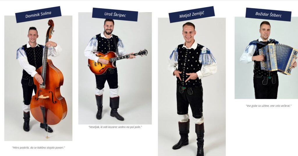 Fantje iz Opoja na različnih veselicah…: Kar se tiče narodne glasbe igrajo tako kvintet, kot trio skladbe. Kar se tiče zabavne glasbe, igrajo slovenske (od evergreenov do drugih pop skladb), hrvaške (pop, klapske, stari jugo rock) in skladbe tujih izvajalcev. Njihov zaščitni znak je tudi ubrano 4 glasno petje…