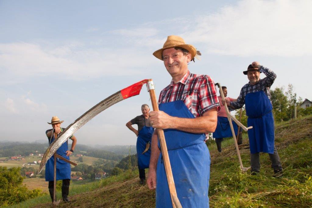 Glede na to, da sodobna mehanizacija, tehnološki napredek in robotizacija, na številnih področjih življenja, še zlasti v kmetijstvu vedno bolj potiskajo človeka na obrobje, so vsekakor dobrodošla društva in organizacije, a tudi posamezniki, ki z različnimi etnološkimi prireditvami obujajo spomine na preteklost, ter ohranjanje starih kmečkih običajev in opravil na podeželju. In za nekaj podobnega, košnja trave z ročno koso, že 30 let skrbijo v družini Vidovič iz haloškega naselja Repišče, ki premore okoli 130 prebivalcev, pri Zgornjem Leskovcu, v občini Videm. Tam je konec tedna potekal 30. dogodek, s katerim brata Marjan (68) in Benjamin Vidovič (63), s sorodniki, prijatelji in sosedi, predvsem združujejo ljudi in ohranjajo običaj ročne košnje, ki je nekoč bilo edino opravilo. Pravzaprav na njihovih haloških strmih bregačah niti najsodobnejše mehanizacija ne bi mogla veliko postoriti, edino mogoče žive kose – drobnica, ovce ali koze.