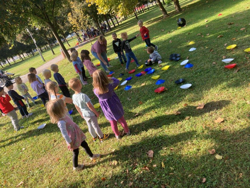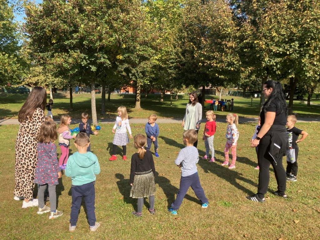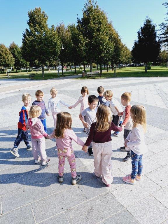 Ob pomembnih dnevih se tradicionalno zberemo v našem čudovitem radgonskem parku, kjer prisluhnemo ptičjemu petju, šelestenju listja ter opazovanju listov najrazličnejših barv, oblik in velikosti. Park je prostor, kjer lahko delamo v sozvočju z naravo parka in naravo otrok ter vseh tistih ljudi, ki se nam pri igri pridružijo. Otrokov gibalni razvoj je najbolj izrazit v prvih letih življenja, zato je predšolsko obdobje najboljše za vključevanje otrok v gibalne dejavnosti. V letošnjem šolskem letu je v našem vrtcu prednostno področje prav gibanje, katerega povezujemo z ostalimi področji kurikuluma. Otrokom želimo dati največ, predvsem pa tisto, kar ga bogati in je njegova dota za celotno življenje in optimalni razvoj.
