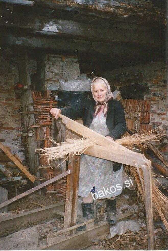Mlinarova lanišnica je ohranila še veliko prvinskega, čeprav so dele zidu že podrli, zidake pa porabili za zidavo svinjske kuhinje. Iz načina gradnje in materiala je sklepati, da je stara najmanj 170 let. V njej je ohranjeno vso orodje za trenje, torej trlice in glavniki za izčesavanje prediva in drugi pripomočki. Ohranjen je tudi poseben koš, rekli so mu “lesa”, za sušenje krhljev. Še več, gospodinja Marija in gospodar Matija sta nam improvizirano prikazala kako se je trlo s trlicami. Za ta prikaz sta imela na voljo konopljo, seveda industrijsko, in predivo. Po trenju so nam Marija, hčerkica Jožica in gospodar Matija prikazali tudi način izdelovanja vrvi. Za to so iz podstrešja prinesli stroj, ki mu pravijo “brde”, kavlje, vuka in klin za izdelavo ušes pri štriku. To še ni vse. Pokazali so nam tudi balo platna, rekli so mu “cvilih”,iz lanenih vlaken, ki jih je nekoč Marija, in tudi druge predice, spredla na kolovratu, v platno pa je, na ročnih statvah, stkal tkalec, ki je deloval v Okoslavcih.
