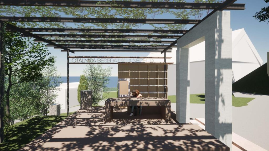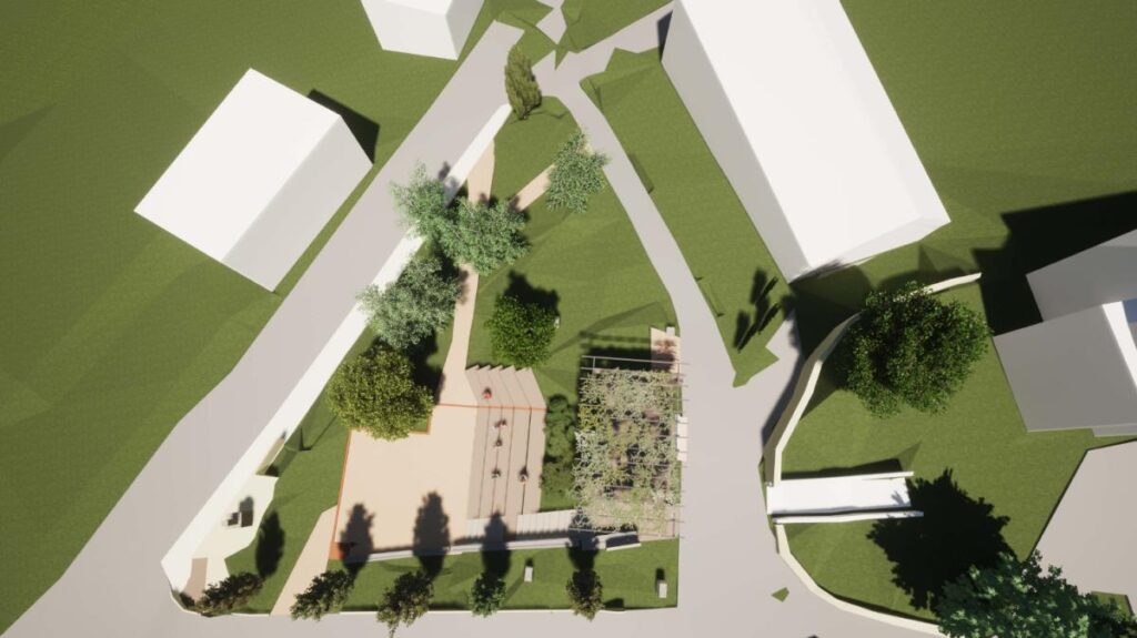 V sklopu projekta se bo na zgornjem vzhodnem delu uredila ploščad, ki bo pokrita s pergolo. Predvideni portal s peskanim granitom bo simboliziral vhod, ki se bo nahajal na mestu, kjer so bila nekoč vrata v šolo. Uredila se bo knjigobežnica, postavila se bo digitalna tabla in lesena vrtljiva camera obscura, ki bo omogočala poglede na pokrajino. Na južnem robu ploščadi se bo uredil pitnik. Pod ploščadjo je predvidena manjša tribuna s štirimi vrstami in večnamenska ploščad, ki bo v obliki tlorisa nekdanje šole in bo imela še posebej poudarjen rob v drugačni barvi tlakovca. Mimo tribune bo proti severu pot vodila v park starih brez. Obstoječa zasaditev se bo ohranila in po potrebi sanirala. Zasadile se bodo grmovnice in posamična drevesa kot dopolnitev obstoječe zasaditve.
