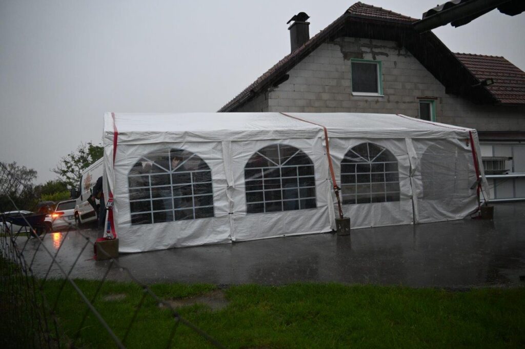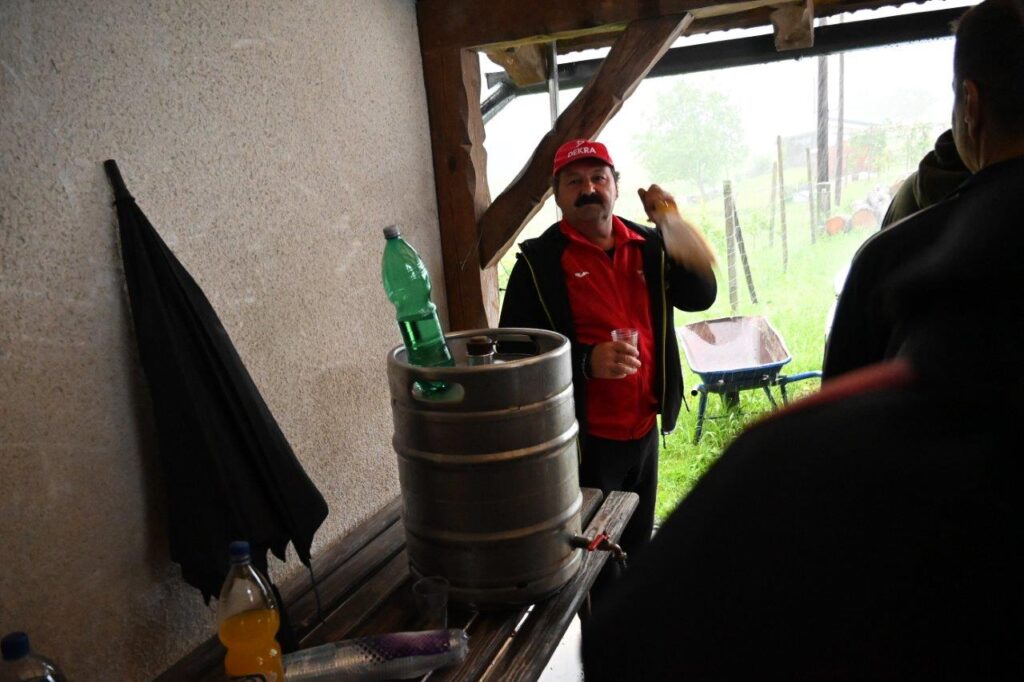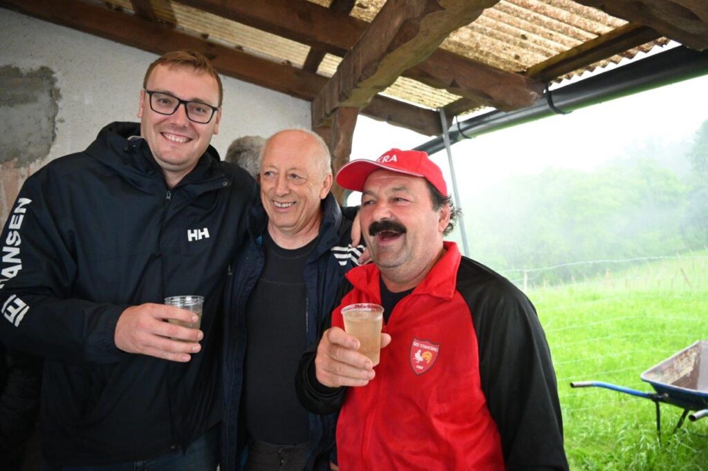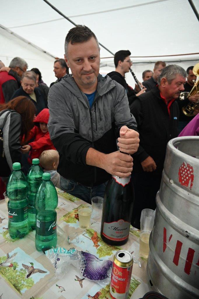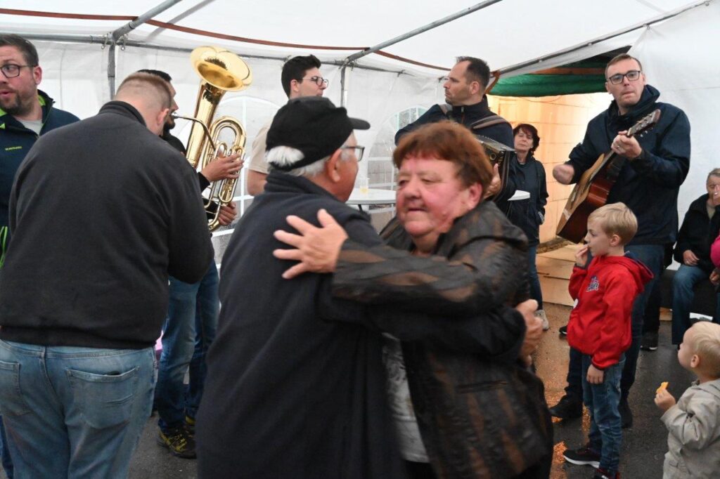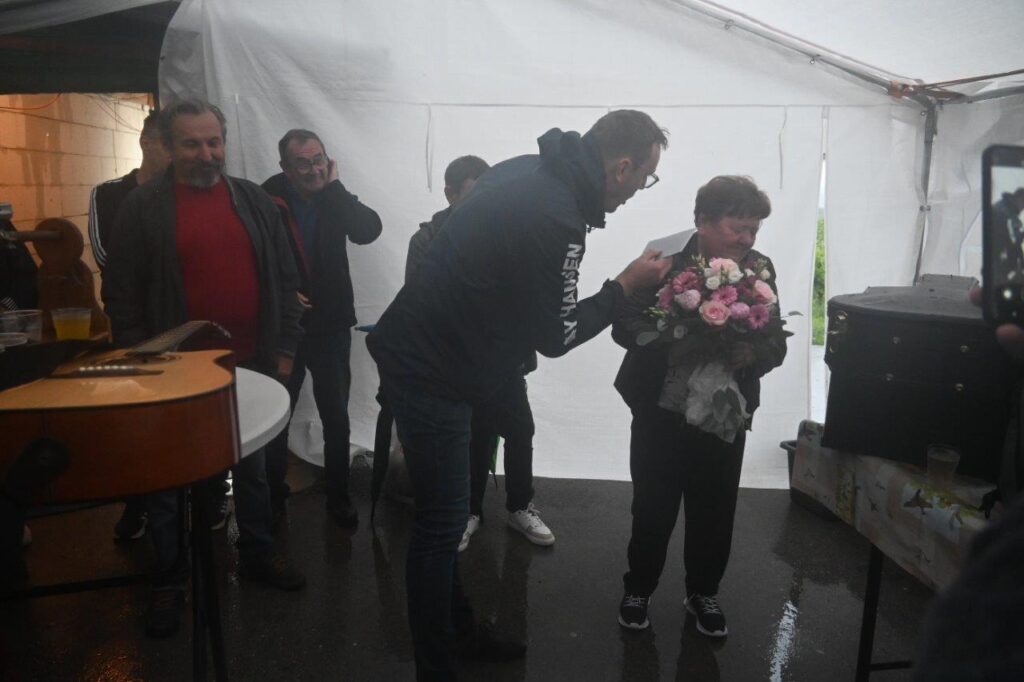 Ko so se zbrali v šotoru, ki sta ga postavila Andrej in Vojko Jaušovec iz Štajngrove pri Benediktu, so Mladih 5 zaigrali in s svojim nastopom povabili slavljenko med udeležence slavja. V dežju pod dežnikom, jo je iz njene hiše v prireditveni šotor pripeljal sin Tonč. Ko je zagledala množico obiskovalcev prireditve in slišala igranje Ansambla Mladih 5, so ji na oči prišle solze sreče. Ni mogla skriti presenečenja, ki so ji ga pripravili za njen rojstni dan. Tudi ni mogla skriti čustev sreče, ki jih je doživela ob tolikšni množici obiskovalcev in melodijah, ki sojih v njeno čast izvajali člani ansambla. Svojo veselje je izrazila tudi na tak način, da je ob igranju ansambla tudi zaplesala. Ni treba posebej poudarjati, da so se odvijale tudi zdravljice z vinsko kapljico, ki so jo prispevali bližnji in daljni vinogradniki. Za pogostitev pa so poskrbeli domači, s sladkarijami pa tudi udeleženke srečanja, S slavljenko so nazdravljali tudi s penino iz velike več litrske steklenice. Druženje se je nadaljevalo v veselem razpoloženju, kjer je svoje veselje izražala tudi slavljenka, ki je sicer vedno vesela in nasmejana.