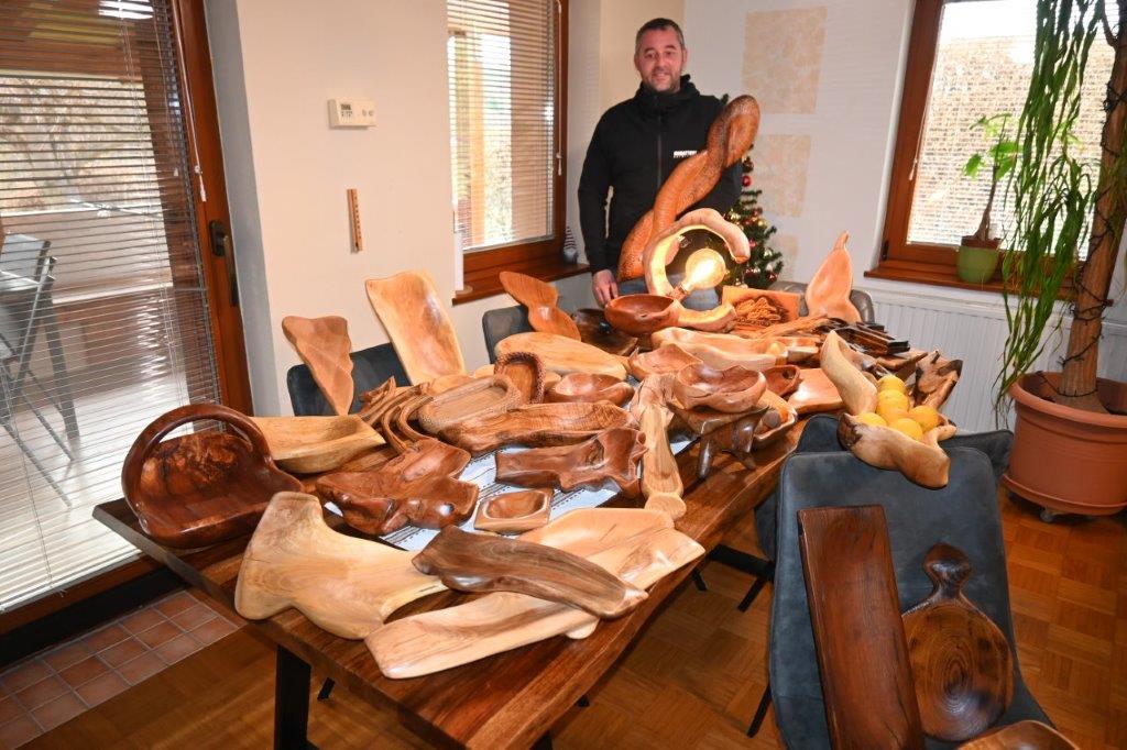 V minulih decembrskih dneh, ko so se vrstili takšni in drugačni adventni in sploh praznični sejmi ter bazarji, človek med sprehodom od stojnice do stojnice, naleti na marsikaj zanimivega in unikatnega, za kar prej niti sanjal ni, da obstaja. Enako ponudniki, prodajalci in razstavljavci tudi na mnogih drugih krajevnih in verskih dogodkih, kot so sejmi, žegnanja, birme ipd., ponujajo različne spominke, suvenirje, okraske in uporabne reči za kuhinjo, jedilnico ipd. Vse te lepe in uporabne reči, bodisi iz bakra, iz šibja, papirja, slame ali drugih materialov, zlasti lesa, so prava paša za oči in marsikomu zastane dih, še posebej ko ugotovimo, da gre zgolj za naravne, ročno obdelane in zaščitene materiale. Prav na takšne reči smo naleteli tudi pri podjetnemu, 41-letnemu Mitji Guzelju, ki se je pred leti, ko se je zaljubil v Darjo iz okolice Gornje Radgone, katero je spoznal na faksu v Mariboru, iz Bistrice ob Dravi, izpod Pohorja preselil v vinorodne radgonske gorice. Z Darjo sta si ustvarila družino in po nekaj let življenja na njeni domačiji v Črešnjevcih, sta si kupila lasten dom v Policah nad Gornjo Radgono z ene in Ščavniško dolino z druge strani, katerega lepo urejajo, posodabljajo in vzdržujejo.