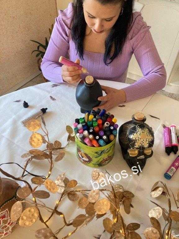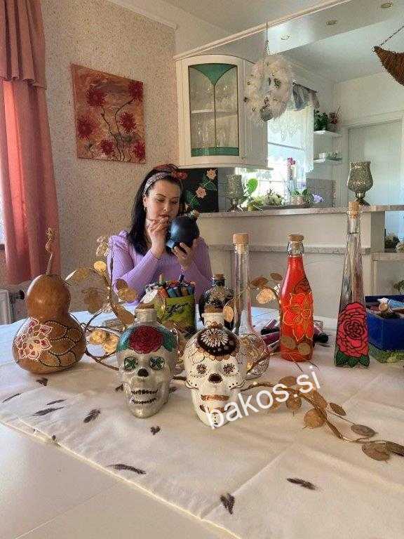 „Moje lobanje so bolj barvite in veselega videza. Primerne so za unikatno darilo, saj v steklenico lahko natočimo alkoholno ali brezalkoholno pijačo,“ nam še doda Dorina, ki se pohvali, da sama rada natoči kar domače žganje ali zvarek iz zelišč, ki pa ga pripravi skupaj z mamo.