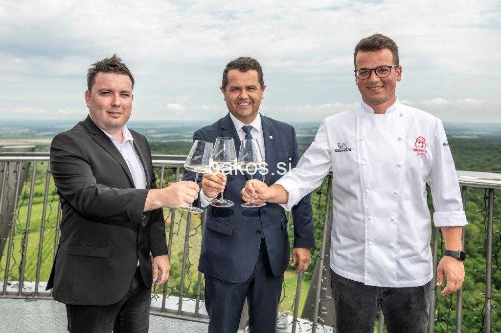 Lendavski župan Janez Magyar in v. d. direktorja Zavoda za turizem in razvoj Lendava Rok Petje. Sta ob bližajoči se peti obletnici odprtja stolpa Vinarium Lendava, predstavila število obiskovalcev in razkrila novost – večerjo z razgledom na stolpu, ki sledi konceptu petzvezdičnega doživetja za individualne goste. V obliki večerje bodo ustvarili prestižno doživetje z lokalnim kuharskim mojstrom na tretji najbolj obiskani turistični točki v Sloveniji, d čem želijo ponujati ambiciozne produkte, ki bodo vzbudili zanimanje tako lokalne kot širše skupnosti. Pri projektu so k sodelovanju privabili gostilno Rajh iz Bakovec s chefom Leonom Pintaričem, ki je bila pred kratkim uvrščena v prestižni Michelinov gastronomski vodnik. Lenavačani so ob tem, da bo njihova turistična atrakcija stolp Vinarium Lendava, upihnil 5. svečko, in omenjeni večerji z razgledom, na novinarski konferenci, ki je potekala na razgledni ploščadi, med drugim predstavili tudi projekt za ureditev adrenalinskega športa za mlajše oziroma tiste, ki so mladi po srcu, torej izgoradnjo 500 m dolgega »zip line-a«, ki bo še dodatno povečal zanimanje za obisk destinacije ter pripeljale nove obiskovalce, ki bodo podaljšali svoje bivanje.