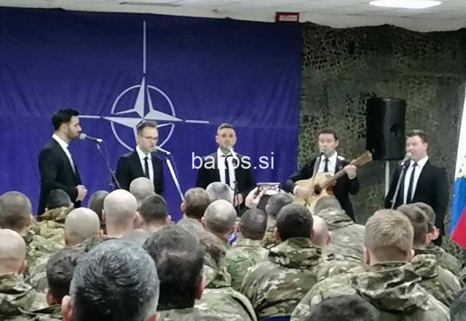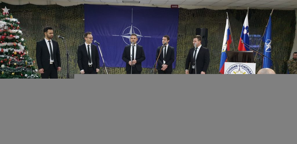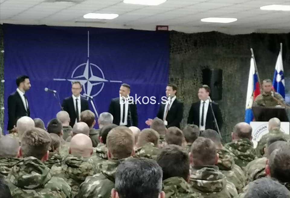 Vokalni kvintet Aeternum v počastitev Dneva samostojnosti in enotnosti zapel slovenskim vojakom na Kosovu