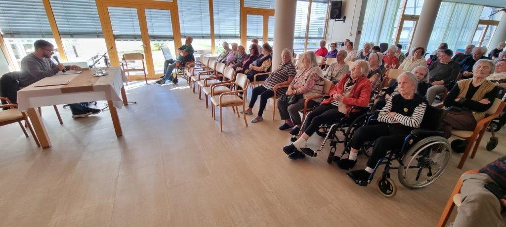 Z nekajdnevno „zamudo“, so v Domu starejših občanov (DSO) Gornja Radgona, ob dnevu reformacije, prazniku slovenskega jezika, pripravili posebno literarno dopoldne, ki je stanovalcem polepšalo dan. Na obisk je prišel pisatelj in pesnik Aleš Ropoša, ki je prisotnim predstavil svojo najnovejšo knjigo z naslovom Pod napetostjo. Dogodek je potekal v prijetnem in sproščenem vzdušju, polnem besed, spominov in iskrenih nasmehov. Avtor je zbrane popeljal v svet svojega ustvarjanja ter ob branju izbranih odlomkov spregovoril o temah, ki ga navdihujejo – o življenju, družbi, ljubezni in notranjih bojih, ki jih vsak človek nosi v sebi.