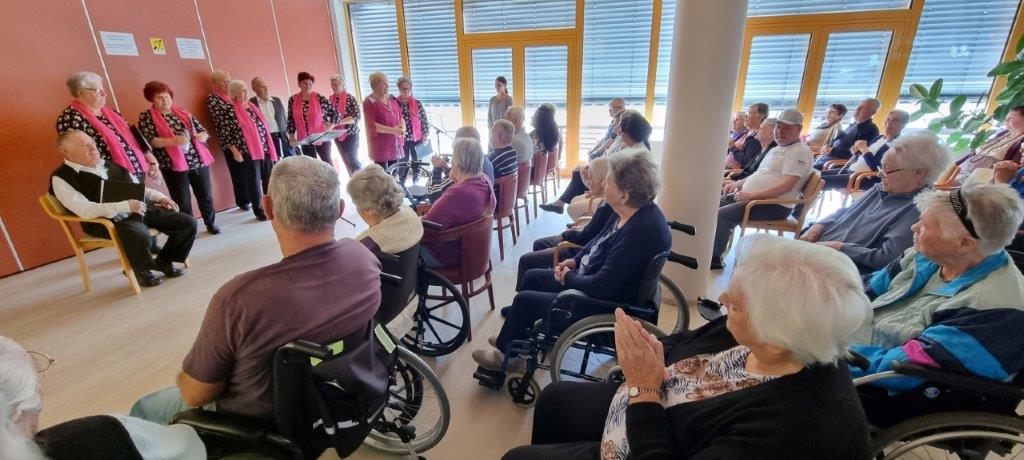 V Domu starejših občanov (DSO) Gornja Radgona, kjer okoli 90 zaposlenih skrbi za čim lepšo jesen življenja kakšnih 150 starostnikov, se vedno nekaj dogaja in stanovalcem gotovo ni pretirano dolgočasno. In medtem, ko so pred dnevi uživali na „Oktoberfestu 2023“ – kostanjevem pikniku, s pivom, kostanji, langašem…, so stanovalci v predprazničnem času doživeli novo prijetno presenečanje. V okviru praznovanja Dneva reformacije so jih namreč obiskali pevke in pevci skupine „Prijatelji“, z zborovodkinjo Metko Schnabl, ki delujejo v okviru MDI Murska Sobota. Stanovalcem, zaposlenim in gostom so zapeli ducat lepih pesmic, kjer si je vsakdo našel nekaj zase, starostniki pa so najraje prisluhnili lepi domači ljudski pesmi, kjer so zapeli tudi sami. Res je, kot je povedala zborovodkinja Metka, so tokrat bile pesmice nekoliko bolj žalostne, saj so bile posevečen tudi dnevu mrtvih, a je obljubila, da bodo kmalu, najbrž v božično – novoletnem času, ko bodo skupaj zapeli same vesele skladbice.