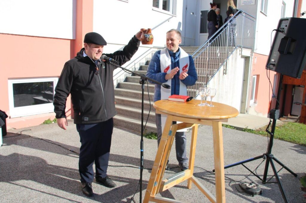 Svoj nagovor je župan sklenil z besedami zahvale vsem, ki so pripomogli k dobremu delovanju društva. Vse navzoče pa je povabil na krst mošta, pred gasilki dom in ob Johanezovi trti. Voditeljica Darinka Čobec, je pred mikrofon povabila na kratek intervju prvega predsednika in ustanovitelja društva Ivana Janeza Pučka, ki v svojih odgovorih nanizal nekaj iz časa, ko je nastajalo društvo. Kot je povedal, je pri ustanavljanju društva bilo pomembno, je društvo imelo podporo občine in župana, tedaj Jožeta Kranerja, ki je bil prvi župan občine, ter nato tudi njegovega naslednika sedanjega župana Marjana Žmavca. Občina, kakor tudi župana, je društvu pomagala pri organiziranju prireditev, ter ga tudi podpirala s sredstvi, ki jih je, in jih še potrebuje, pri delovanju društva. Ob tej priliki je tudi pohvalil člane društva člane upravnega odbora, ki so tvorno sodelovali pri vodenju društva. Kot je poudaril ni predsednik glavni, glavni so tisti, ki so pripravljeni delovati v društvu. Pohvalil je tudi svoja naslednika, ki naprej dobro vodita društvo in skrbijo za dobro delovanje.