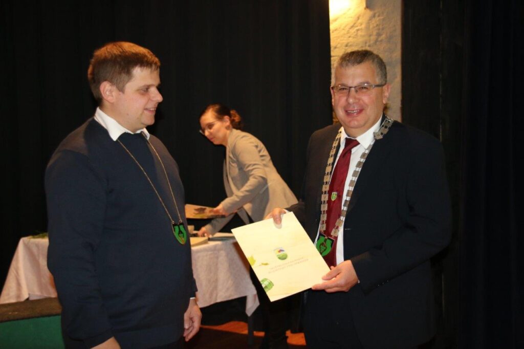 Župan Marjan Žmavc je prav tako pozdravil vse navzoče, ter se jim zahvalil za udeležbo. Dalje je v svojem na govoru med drugim povedal: „Spoštovani vinogradniki, vinske kraljice, vinski vitezi Evropskega in Slovenske reda, dragi gostje! Ob letošnjem Martinovanju v Cerkvenjaku, praznujemo tudi 20 let uspešnega delovanja DVLV Cerkvenjak, ki sodi med najbolj dejavna društva v občini. Želja po ustanovitvi lastnega društva v novonastali občini Cerkvenjak pred 25 leti, je tlela že nekaj časa pred samo formalno ustavitvijo DVLV Cerkvenjak pred 20 leti. Prav ustanovni člani društva ste tisti, ki ste prepoznali nujnost ustanovitve lastnega društva, zaradi povezovanja vinogradnikov v naši občini, postavili pa ste tudi boljšo promocijo vin in strokovnih izobraževanj pridelave ter nege vin. Danes lahko s ponosom povemo, da vina naših vinogradnikov dosegajo visoke ocene različnih ocenjevanjih vin. To pa je seveda plod vašega uspešnega delovanja, na vseh področjih dela društva vaših članov, ki danes tvorijo trdno jedo in ste prisotni skoraj na vseh predelitvah v občini Cerkvenjak pa tudi širše v slovenskem prostoru.“
