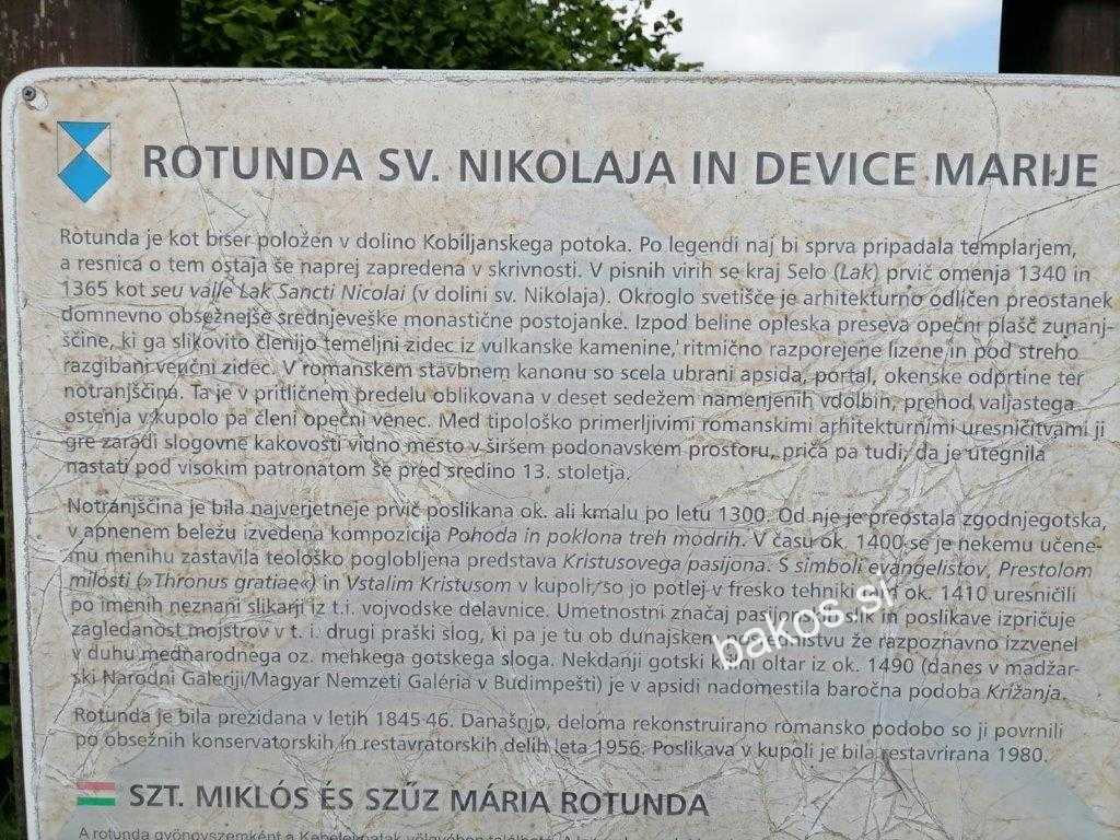 Na dnu selanske doline je edinstvena opečna romanska rotunda v Sloveniji. Provincialno izhodišče za materialni nastanek Selanske rotunde daje tej stavbi poleg turniškega in domanjševskega primera sloves najstarejše stavbe v Sloveniji. Izpred cerkvice stoji informativna tabla na njej pa je zapisan tale zapis: Rotunda je kot biser položen v dolino Kobiljanskega potoka. Po legendi naj bi sprva pripadala templjarjem, a resnica o tem ostaja še naprej zapredena v skrivnosti. V pisnih virih se kraj Selo (Lak) prvič omenja 1340 in 1365 kot seu valle Lak Sancti Nicolai (v dolini sv. Nikolaja ). Okroglo svetišče je arhitekturno odličen preostanek domnevno obsežnejše srednjeveške monastične postojanke. Izpod beline opleska preseva opečni plašč zunanjščine, ki ga slikovito členijo temeljni zidec iz vulkanske kamnine, ritmično razporejene lizene in pod streho razgibani venčni zidec. V romanskem stavbnem kanonu so scela ubrani apsidi, portal, okenske odprtine, ter notranjščina. Ta je v pritličnem predelu oblikovana v deset sedežem namenjenim vdolbin, prehodi valjastega ostenja v kupolo pa členi opečni venec. Med tipološko primerljivimi romanskimi arhitekturnimi uresničitvami ji gre zaradi slogovne kakovosti vidno mesto v širšem podonavskem prostoru, priča pa tudi, da je utegnila nastati pod visokim patronatom še pred sredino 13. stoletja.