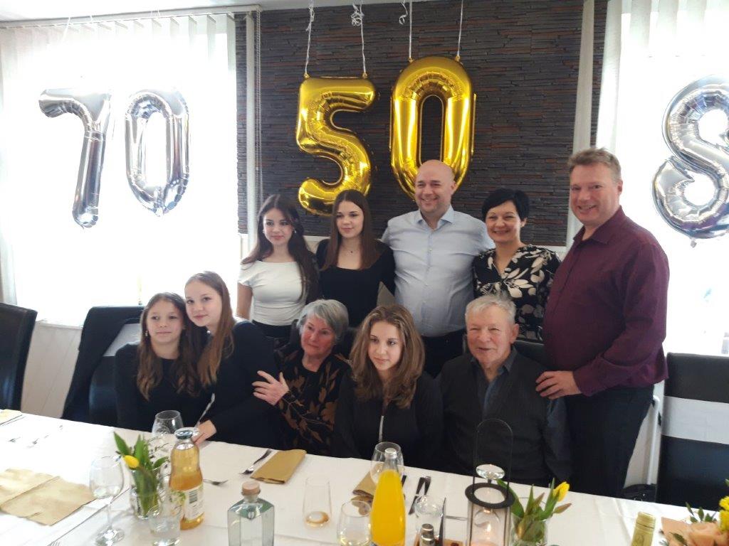 So primeri, ko se nekatere stvari, bodisi datumi, dogodki, obletnice…, enostavno poklopijo in tako pride do še posebej zanimivih, prijetnih in veselih slavij. In prav to se je v zadnjih manj kot dveh mesecih zgodilo pri družini Babošek iz Radencev, tako da so hkrati praznovali kar štiri okrogle in častitljive obletnice. V ospredju je sicer bila zlata poroka Bože in Rudija Baboška, kar sta v družbi svojih najdražjih ter sorodnikov in prijateljev, praznovala z družinskim srečanjem in veselim druženjem v gostišču „Križan“ v Spodnji Ščavnici, tam pa je mnoge prisotne presenetilo spoznanje, da so ob 50-letnici skupnega življenja, obeležili tudi tri okrogla življenjska jubileja, rojstna dneva. Najstarejši oziroma najdlje na svetu, kot sam pravi – 80 let, je Rudi, njegova žena Boža je obeležila deset let manj, 70. rojstni dan in njun starejši sin Simon pa bo v letošnjem letu praznoval 50. rojstni dan oziroma se bo srečal s Abrahamom.