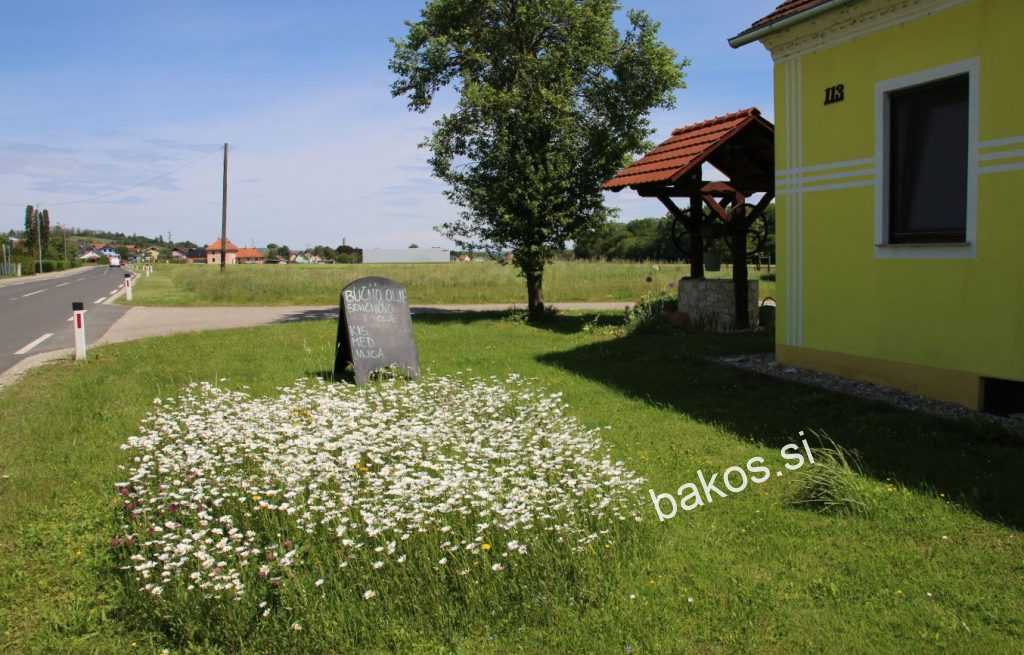 Kot nam je povedal gospodar Jože, je na tem mestu bila prekopana zemlja za položitev vodovoda in so se samodejno naselile marjetice. Kot je znano, povsod z »brnečimi« kosilnicami, vsako travo, še malo, pokosijo. S tem pa tudi rožice, ki poganjajo ob travi. Jančarjevi pa si zaslužijo pohvalo, da so »pustili« marjetice cveteti, ki sedaj krasijo njihovo hišo. Mimoidoči potniki pa lahko to rožno travniško bogastvo občudujejo.