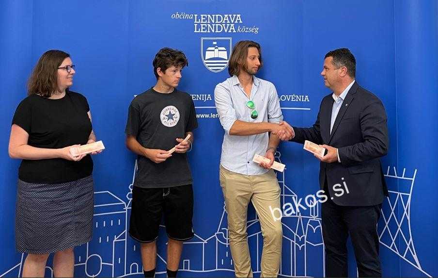Župan Magyar je predal po pet kopalnih kart predstavnikom študentov, srednješolcev in osnovnošolcev (Foto: Občina Lendava)