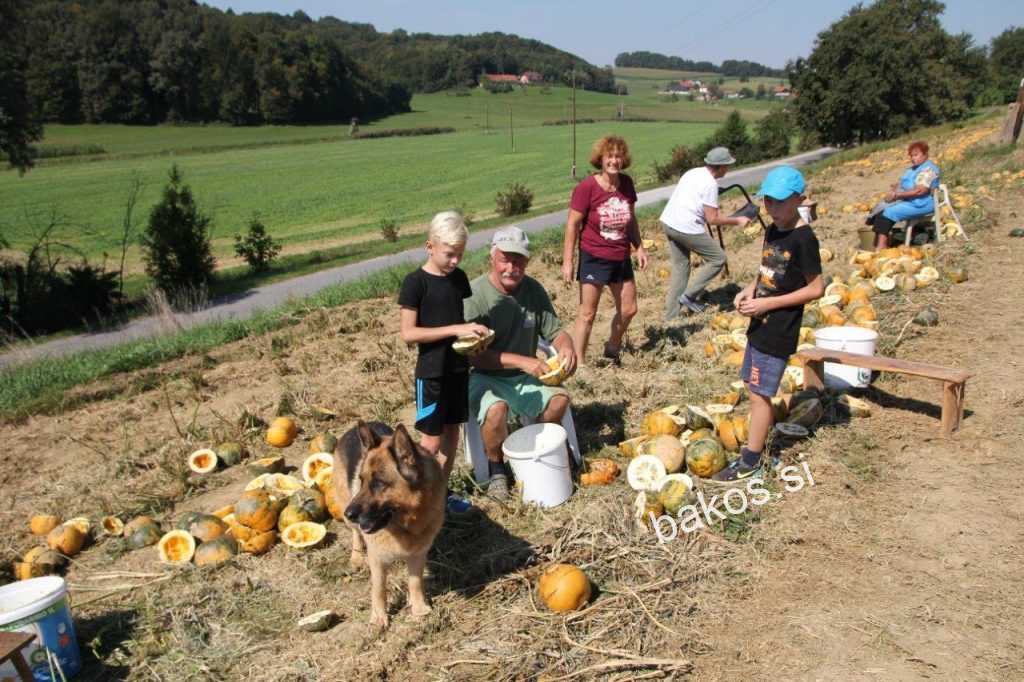 O tem nam je povedala: » Pri nas že od davna sadimo buče, da tako pridelamo bučna semena, iz katerih pridobimo bučno olje, ki je po našem najboljše za pripravo solat. V preteklosti smo buče sadili med druge poljščine, predvsem med koruzo in krompir. Danes jih sadimo kot samostojno kmetijsko kulturo. smo buče trebili ročno, danes to opravilo opravijo stroji. Trebili smo jih na domačem dvorišču, zato ker smo »kopaje«, se pravi od semena iztrebljene polovice buč, krmili prašičem in goveji živini. Ker nimamo veliko buč, imamo jih le za svoje potrebe, smo se odločili, da jih trebimo ročno. Tokrat smo na njivo povabili le sorodnike in prijatelje, da se ob trebljenju lahko družimo, obenem pa opravimo koristno delo. Kot vidite delo teče ob prijetnem razpoloženju. K temu je pripomoglo tudi prekrasno sončno vreme.«