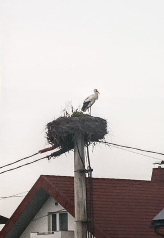 Pred dnevi smo že kratko poročali, da so ene izmed znanilk pomladi, štorklje že konec februarja začele prihajati z juga. Najprej so dolgokljuno in dolgonogo ptico, najbrž gre za štrka, saj slednih prvi prihajajo, fotografirali pri Jančarjevih v Črešnjevcih pri Gornji Radgoni, in sicer v četrtek, 29.2., nekaj dni pozneje, v ponedeljek, 4.3. pa tudi na Ljutomerski cesti (pri Molu in Tušu), v mestu penine in sejmov Gornji Radgoni. In prav tam so ljubitelji živali, predstavniki Društva za opazovanje in preučevanje ptic Slovenije (DOPPS) ter tudi električarji opazili, da je gnezdo ogroženo. Zato so še preden je štrk, med čakanjem svoje družice, začel sam popravljati in pripravljati gnezdo, so omenjeni poskrbeli za pomoč štorkljam, in sicer so odstranili staro in dotrajano gnezdo, ter zamenjali podstavek, katerega so malo dvignili nad prejšnjega.